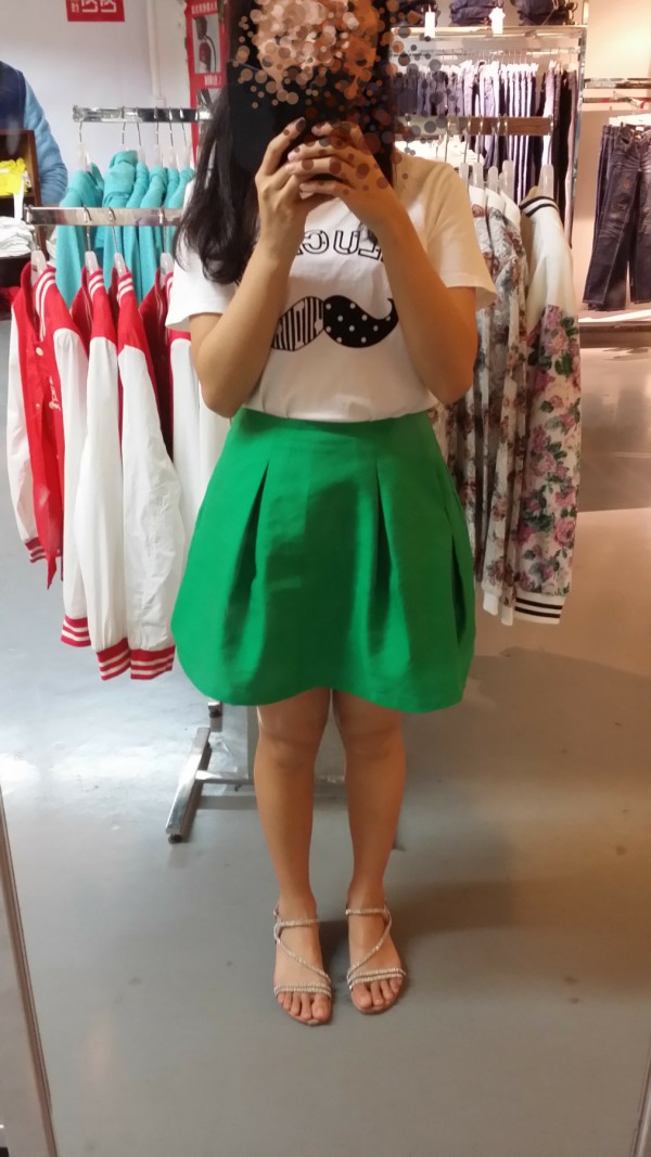 第六身:又是这条裙子,哎呀,小妹如果你真的这么喜欢她,就配一件真丝或雪纺的上衣,再搭一双细跟鞋吧。