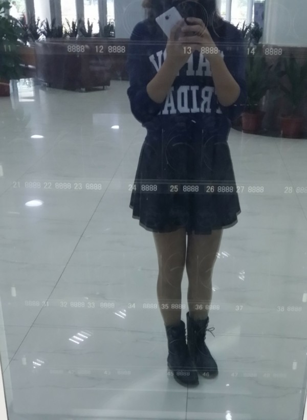 第五身:衣服无论款式和色彩都蛮不错!(虽然下身看不太清细节)但是靴子……呃,我这双靴子很硬朗,确定配短裙合适吗?如果换双不那么硬的休闲鞋比如运动鞋!会不会更合适呢?
