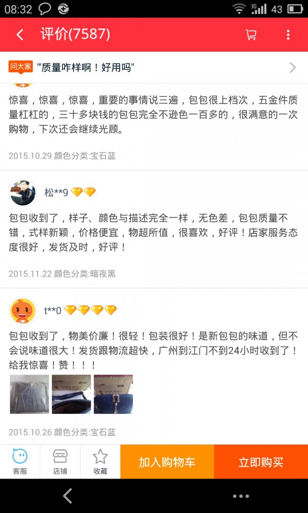 我喜欢看追评中评和图片,一般差不多我都懒得写,特别是小件的东西我一般就写不错还行…