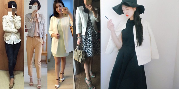 标准的香奈儿外套,采用羊毛斜纹软你,并且边缘都要有滚边,不过我们可以把所有版型类似的圆领外套都统称小香风外套,因为优雅简洁的风格都是很接近的。很多时候,穿上一件小香风外套,也是迈入熟女阶段的标志。顺便推荐一下小编文森特的大作《20位绝代佳人都爱她——小香风外套传奇》涓涓 - 矮梨,圆脸,肤色偏白,155,83-67-88