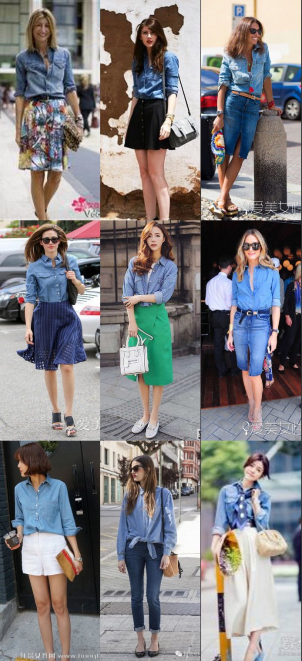 楼主选的是我个人不太喜欢的蓝黑搭,其实蓝黑也可以啦,但前提是要有露肤度,白花花的皮肤才能hold住。。。所以,我告诉你牛仔蓝有几个基本的好朋友哈。随便找了些图,没有排序。