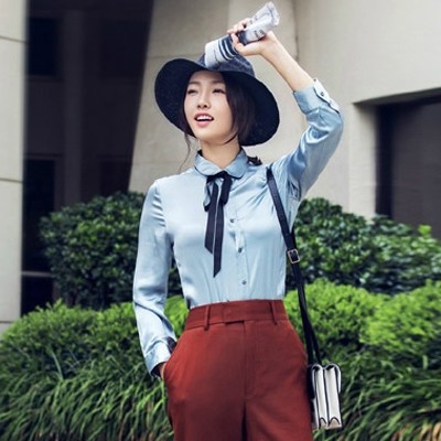 碎花衬衫真是挺难穿洋气的单品,钟小姐穿的超赞,主要因为花稀疏,料子垂软,而且领口版型做的超好,自然呈现的V领口这种传统领口就容易穿的土气