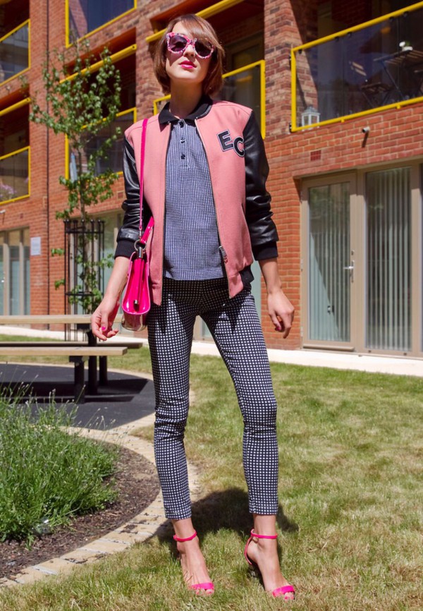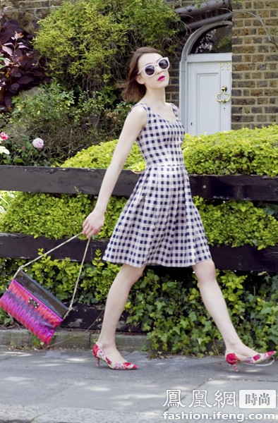 英国时尚博主Ella(因为跟艾里珊钟长的很像,被称为双胞胎版钟小姐)也一样钟爱黑白格子连衣裙,而且穿的时尚感十足,背心伞裙真是很经典的版型。