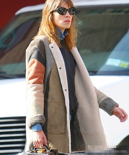 Ella的棕蓝拼色大衣