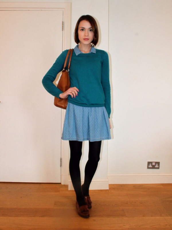 如果鞋/包包/腰带三样都是棕色的,呼应起来就更完美了,看看Ella的展示