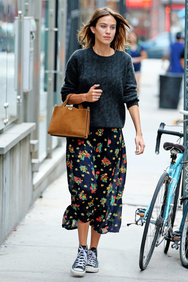 棕色毛衣是炒鸡的自然风格单品,跟碎花铅笔裤搭配,可以混搭出很森系的味道粗棒针毛衣裙可以打造出简单舒服的效果