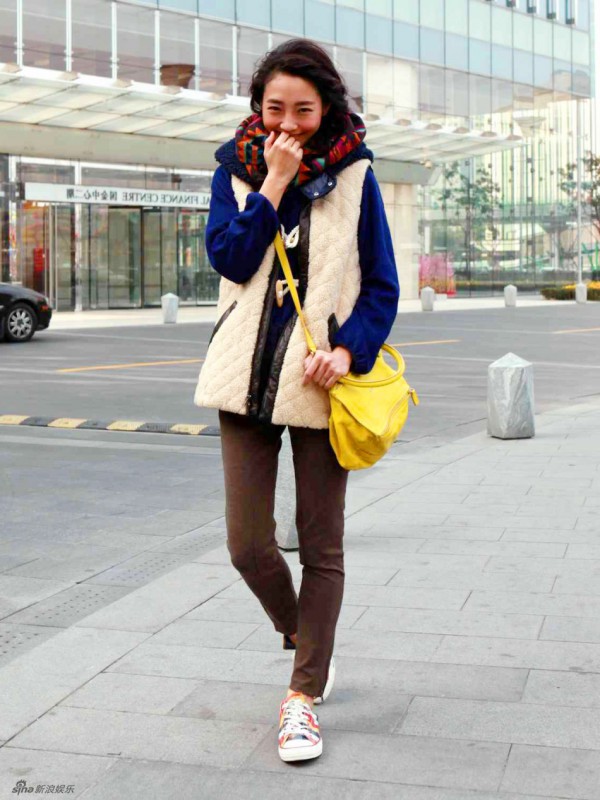 苍井优这款米棕色马甲特别好白百何的米色毛绒马甲也挺舒服