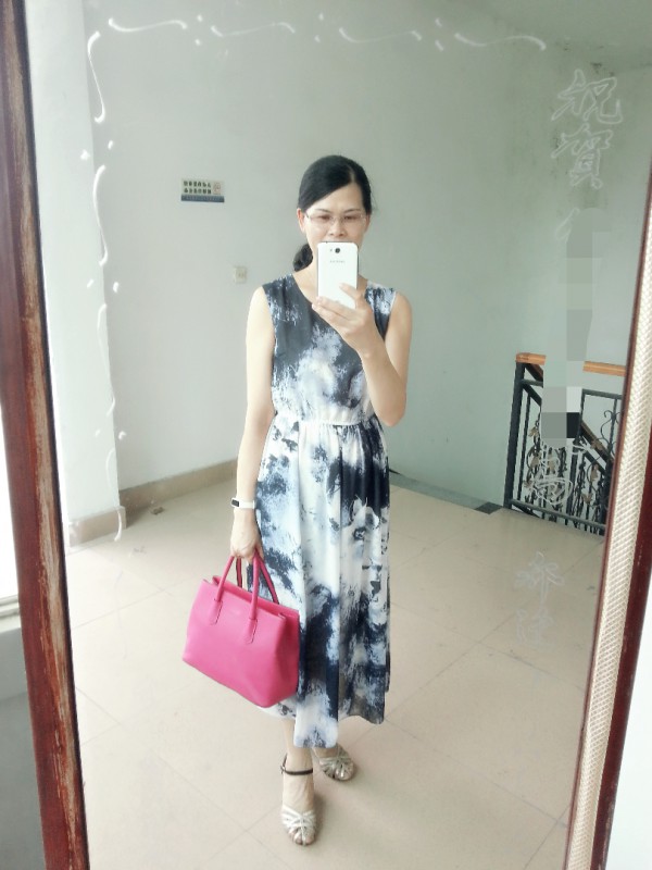 第三身小编欣赏不来我却很喜欢,姑娘的身材和气质都很适合这么温柔娴静的水墨长裙,不过鞋子和包包就有点不搭啦,觉得选同样带些中国风,或者至少民国风(复古,精致)的鞋包会比较配,包太张扬,鞋子有点繁琐。