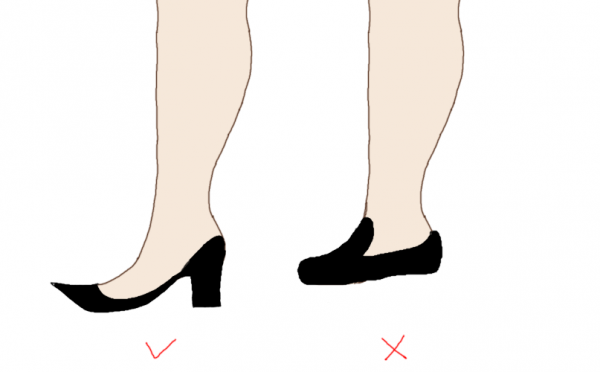 比如我脚小腿粗,鞋一定要选显得脚长的,这样才能反衬出腿细,量感小的鞋比如芭蕾鞋【尤其是圆头】,穿上就像一个细脚伶仃的圆规!