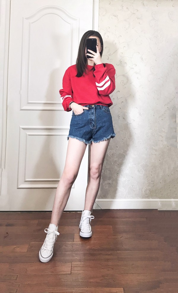 赏心悦目 我觉得每一套看起来都挺舒服的 红色圆领卫衣看起来好有活力 那套皮衣很帅气 我们身高差不多 我重你十斤 看起来差很大 哈哈 我要努力减肥了