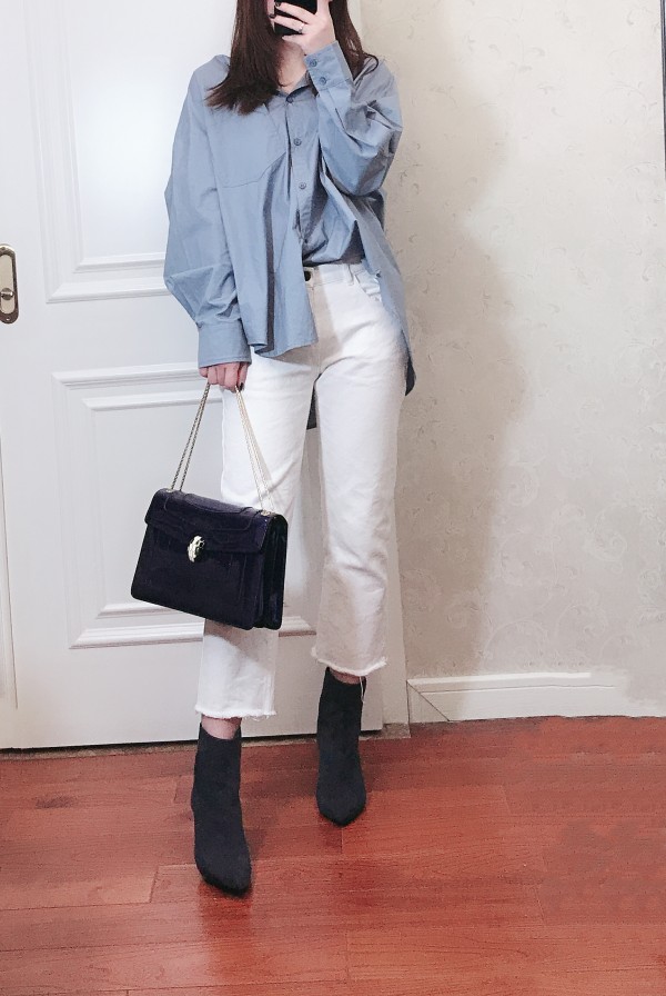 小姐姐,搭配的很有格调,气质好!好几双鞋子都好女人,喜欢,欣赏哈。特别喜欢白裤子蓝色衬衫那一套,蓝色衬衫什么牌子的,拜托小姐姐给链接噢(•ૢ⚈͒⌄⚈͒•ૢ)