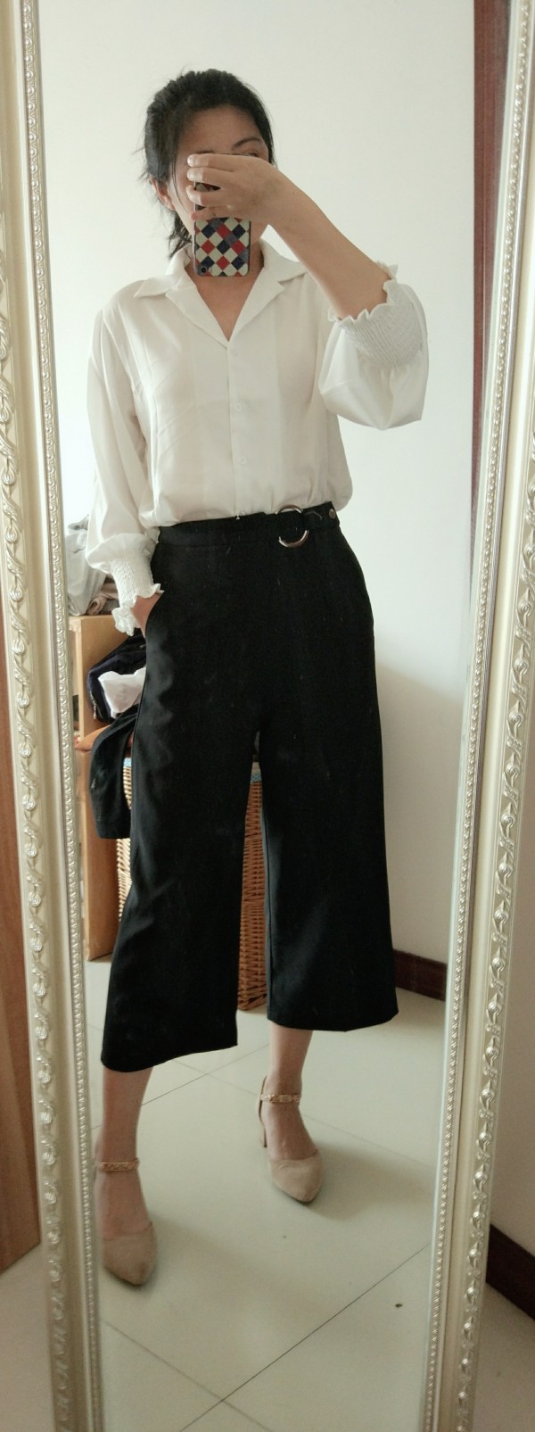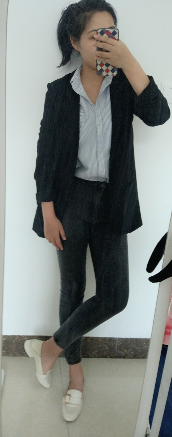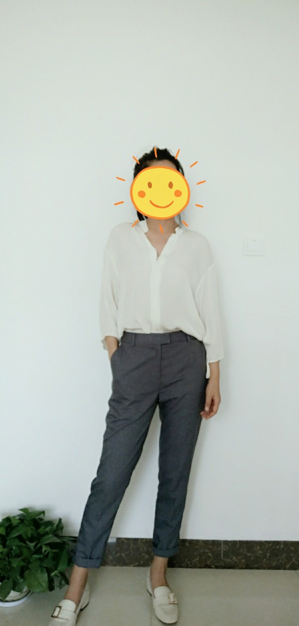 衬衣搭配裤装,很是干练呢,你那条灰色裤子,实力OL范选手啊。