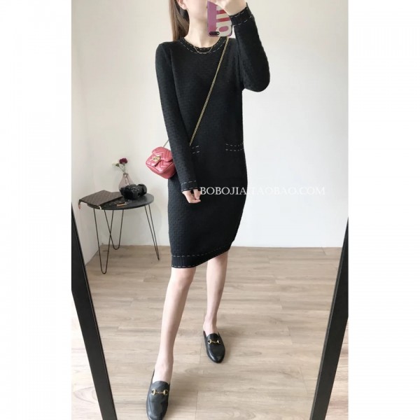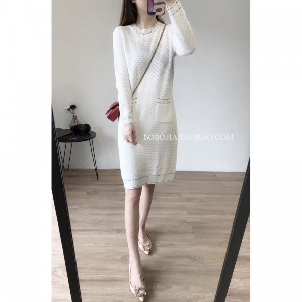 团款5:小香风圆领薄长袖羊毛连衣裙