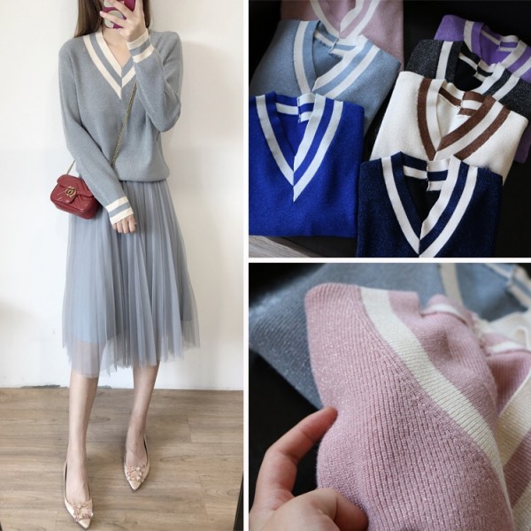 宝贝地址:【减龄!美翻!显瘦!秋 亮丝暗闪条纹水手领宽松学院风女V领针织衫】http://m.tb.cn/h.3Ti3fQF 点击链接,再选择浏览器咑閞;或復·制这段描述¥VgzZb4eelIu¥后到淘♂寳♀[来自超级会员的分享]