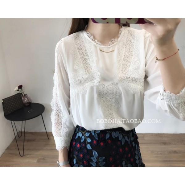 宝贝地址:【出口 法国小众 秋重工镂空蕾丝钩花拼接气质名媛女七分袖衬衫上衣】http://m.tb.cn/h.3ThCEiW 点击链接,再选择浏览器咑閞;或復·制这段描述¥m9zHb4duaRv¥后到淘♂寳♀[来自超级会员的分享]