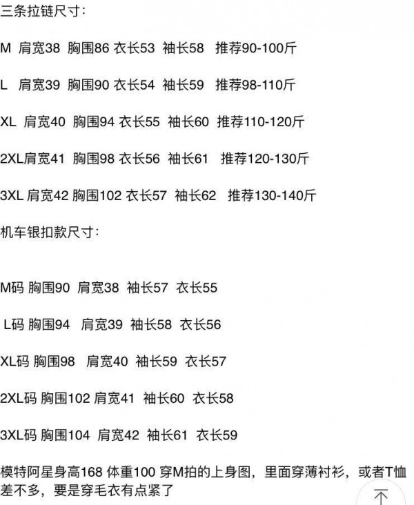 看到一个拉链皮衣同款,里面评价多些。