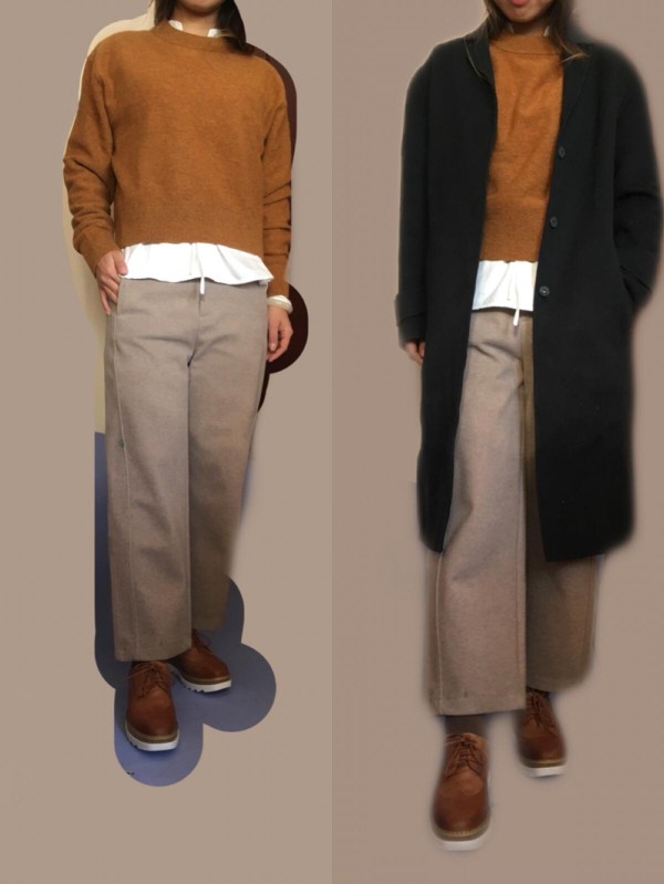 哇咔咔,喜欢你这种休闲混搭范儿,不过毛衣有点不够宽松,把里面的立领衬衫的free感压住了!裤子可以挽起来一点?