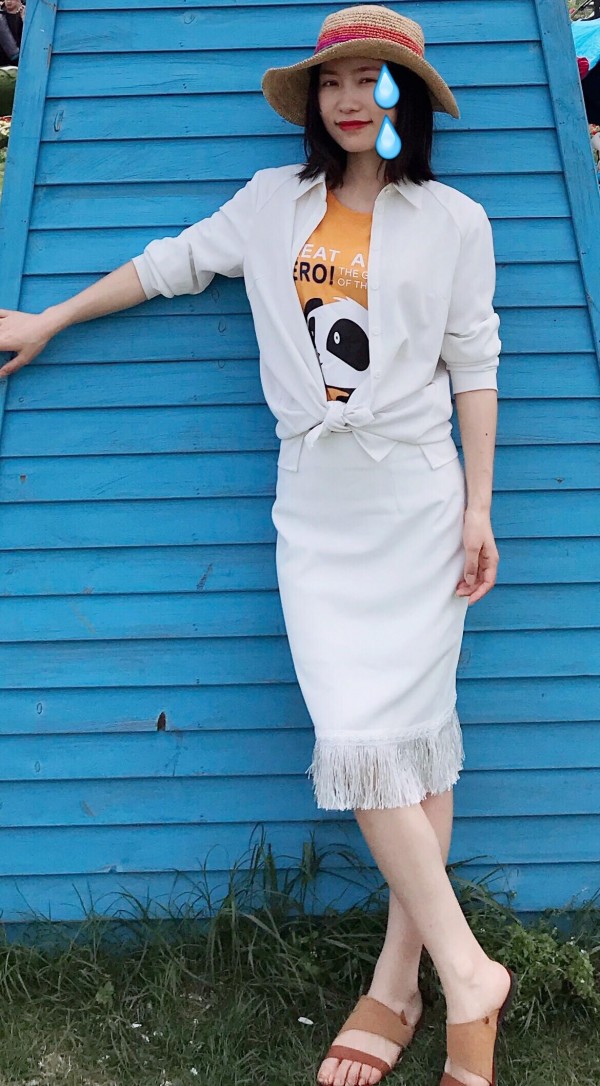 最后一身流苏半裙+穆勒鞋,很是轻松舒适了……