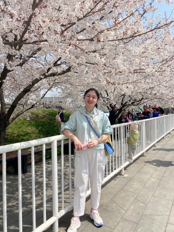 哇哦,樱花真的像雪一样啊,衬衫上的条纹衫披肩,是自己搭配的,还是买来就是那样呀?