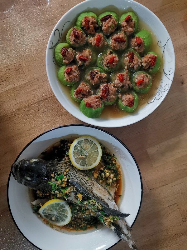 茶茶也太会做菜了吧,那条纹的碗盘是成套的么?好有生活气息仪式感满满❤️。