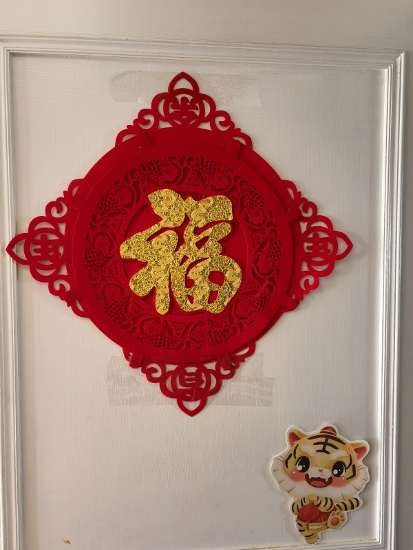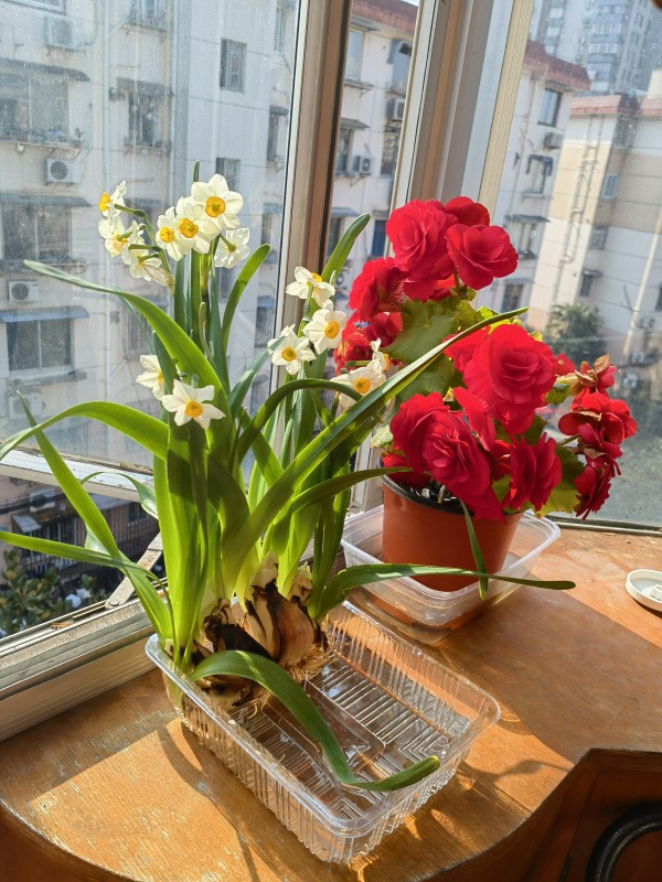 吃火锅,种水仙花和红红火火的海棠花,当然还要挂福啦!