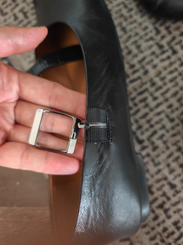 这鞋大概穿了十几二十几次的时候,鞋扣掉了。
