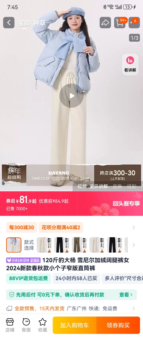 今年的裤子不仅长,而且很阔!压个子!同为小个子,我今天也没买到合适的加绒裤😭😭😭