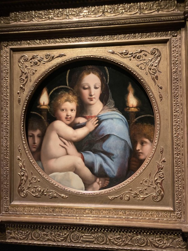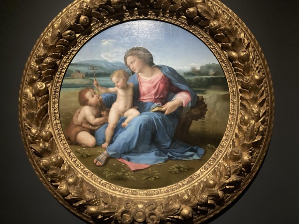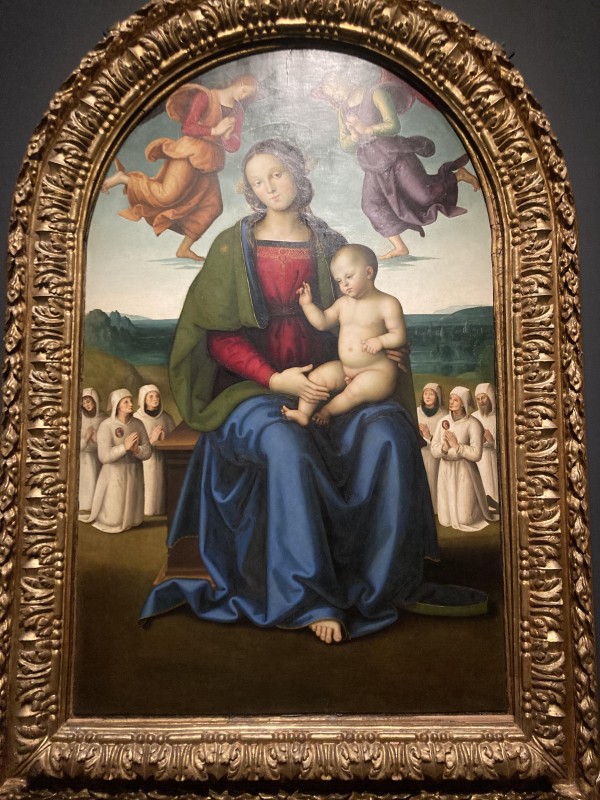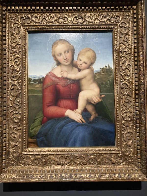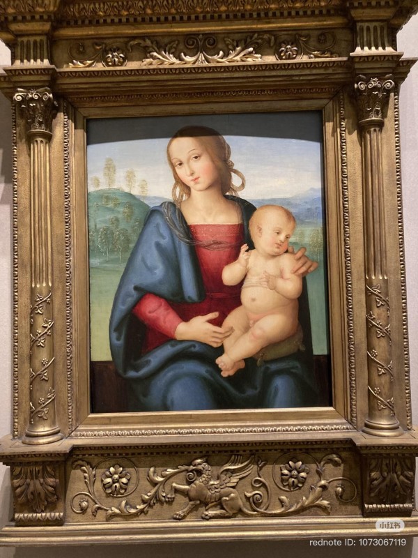 下边两幅一幅是巴尔的摩Walters art museum藏品佩鲁吉诺的圣母子,一幅是National Gallery藏品(也出现在此次展出中)拉斐尔的圣母子