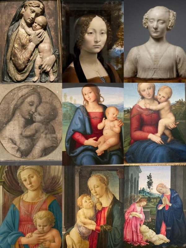 有一座多纳泰罗的陶土浮雕圣母子我忘记放了,拉斐尔的《坦皮圣母》应该有借鉴这个。