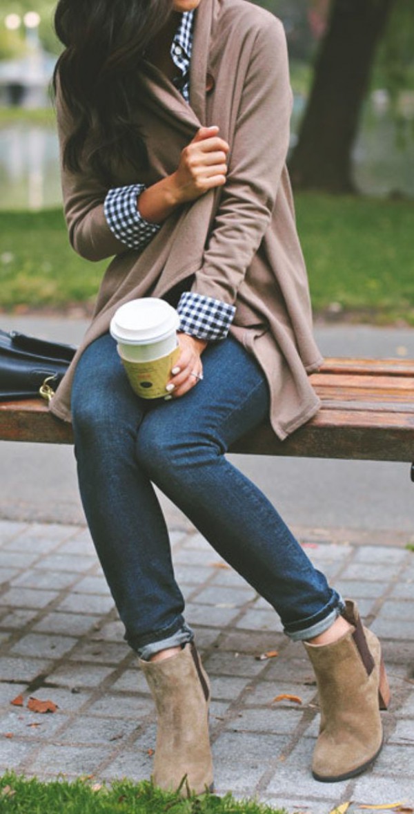 10.下面再给出一些春秋搭配,大家可以先收藏着~ 暖暖的季节很容易把棕色踝靴穿出小清新的风格哦