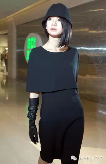 虽然小黑裙是优雅单品,但加了两个飞肩设计的小黑裙,就霸气外露了,黑色大戒指也格外有气场。