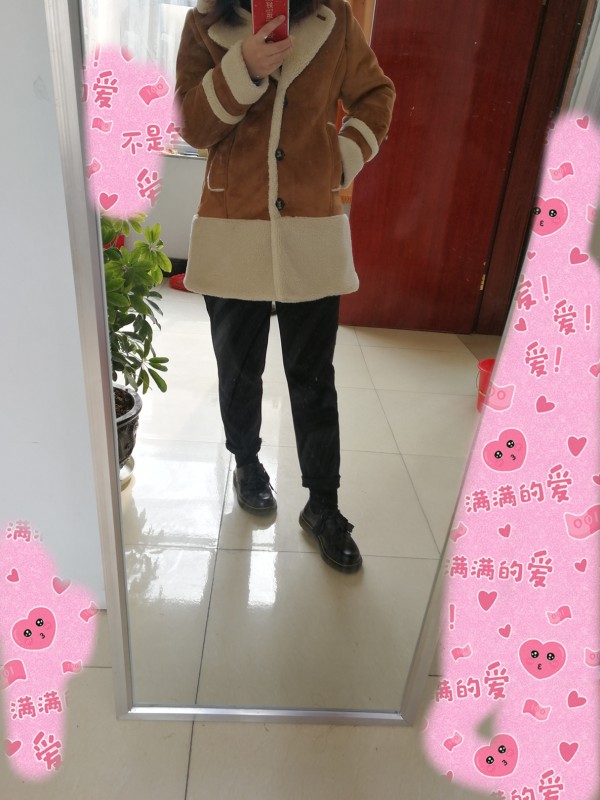 外套是羊羔毛大衣,非常暖和,除了掉毛这个缺点简直完美。零下三四度非常保暖。